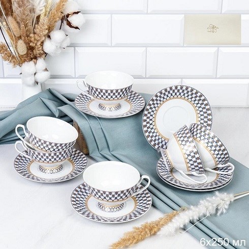 Чайный набор 12 предметов 250 мл на ножке/ KY-1348