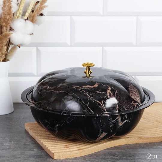 Чаша-салатник 2 л эмаль с крышкой металл / CHW-457