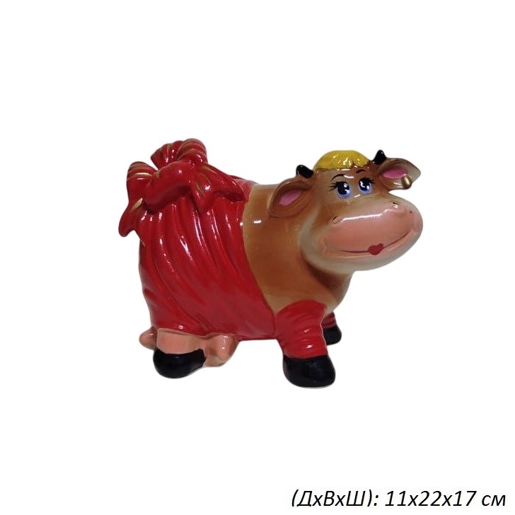 Копилка Коровка с бантом глянец 11х22х17 см керам