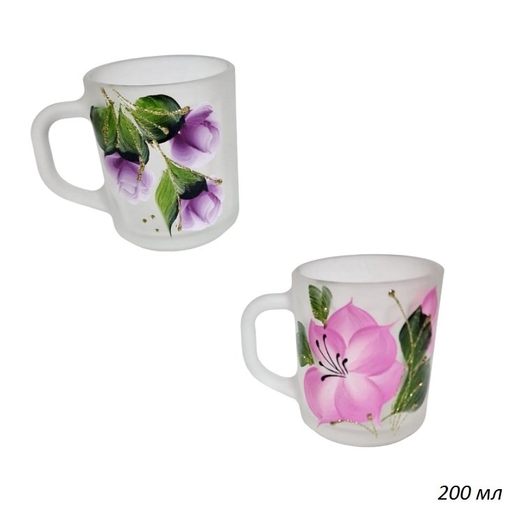 Кружка 1335 Матовая цветы микс 200 мл в гофре
