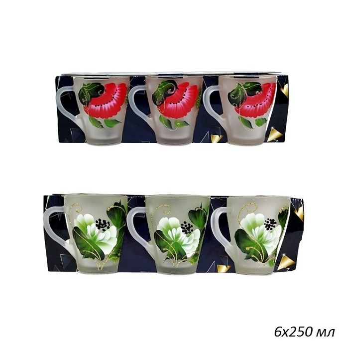 Кружка 1649 Матовая цветы 250 мл набор 6 штук