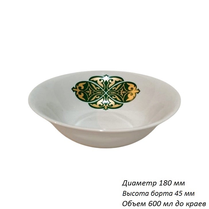 Миска №7 Орнамент зеленый d=180 мм, 600 мл /уп 12