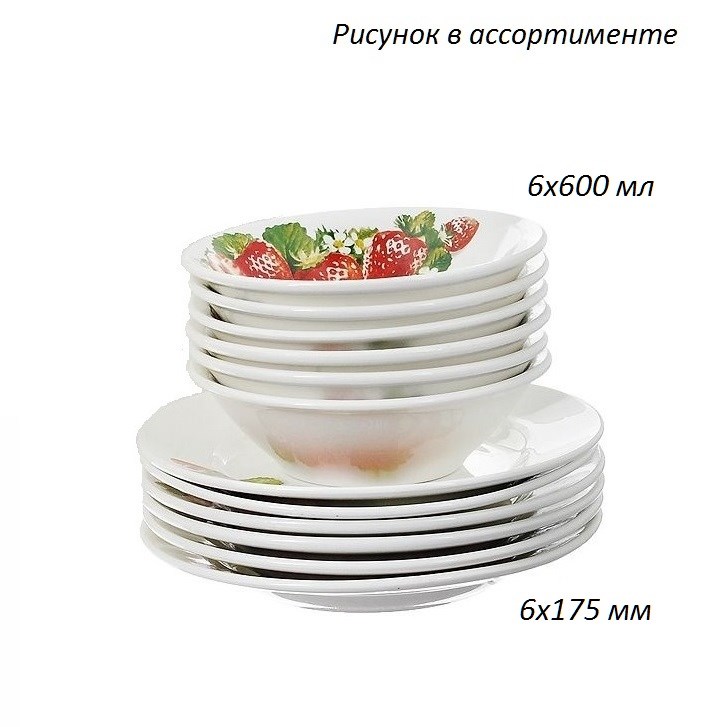 Набор 12 предметов Цветы (Миска 180 мм/Тарелка 175