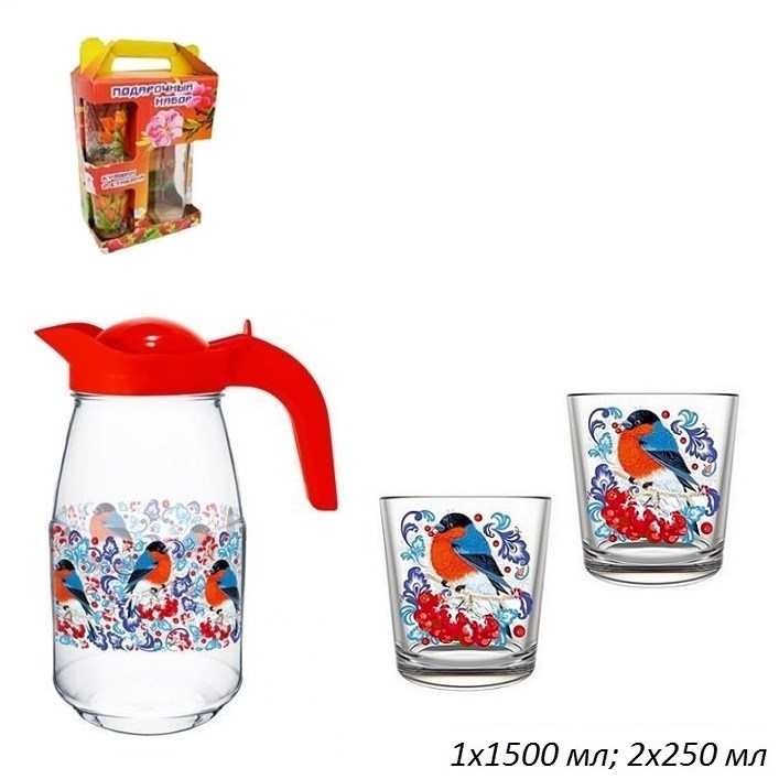 Набор 3 предмета Снегири на рябине (1,5 л/2х250 мл