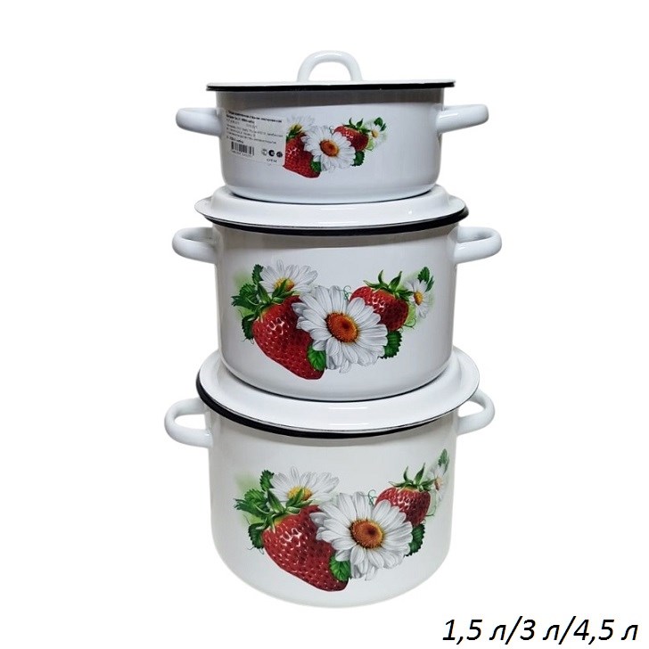 Набор кастрюль эмаль 3 штуки (1,5 л низ/3 л/4,5 л)