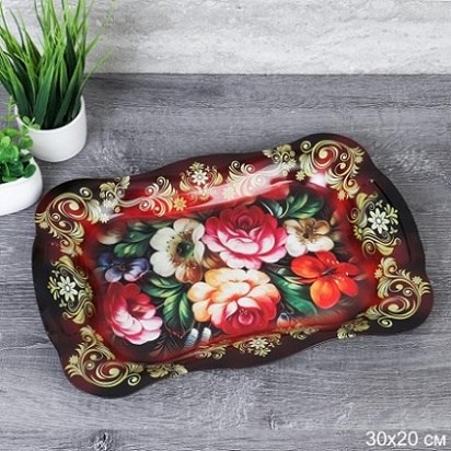 Поднос прямоугол 30х20 см металл Эмаль Розы 6987А