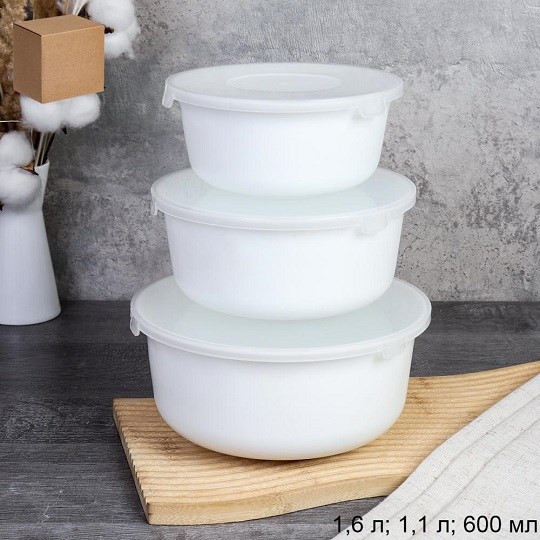 Салатник с крышкой 3 предмета GRAY-3GL (WHITE)