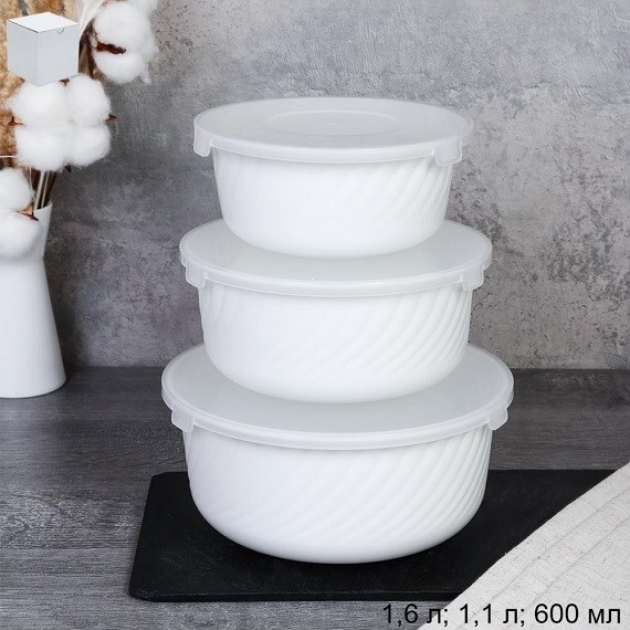 Салатник с крышкой 3 предмета GRAY-DW3 (WHITE)