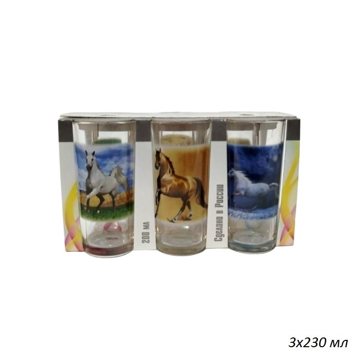 Стакан Лошади микс высокий 230 мл набор 3 штуки