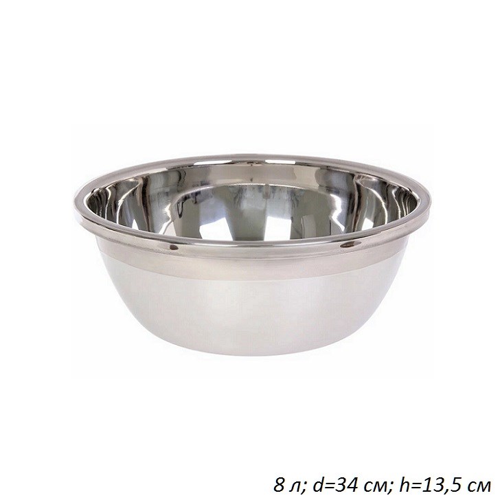 Таз 8 л нержавеющая сталь, d=34 см, h=13,5 см